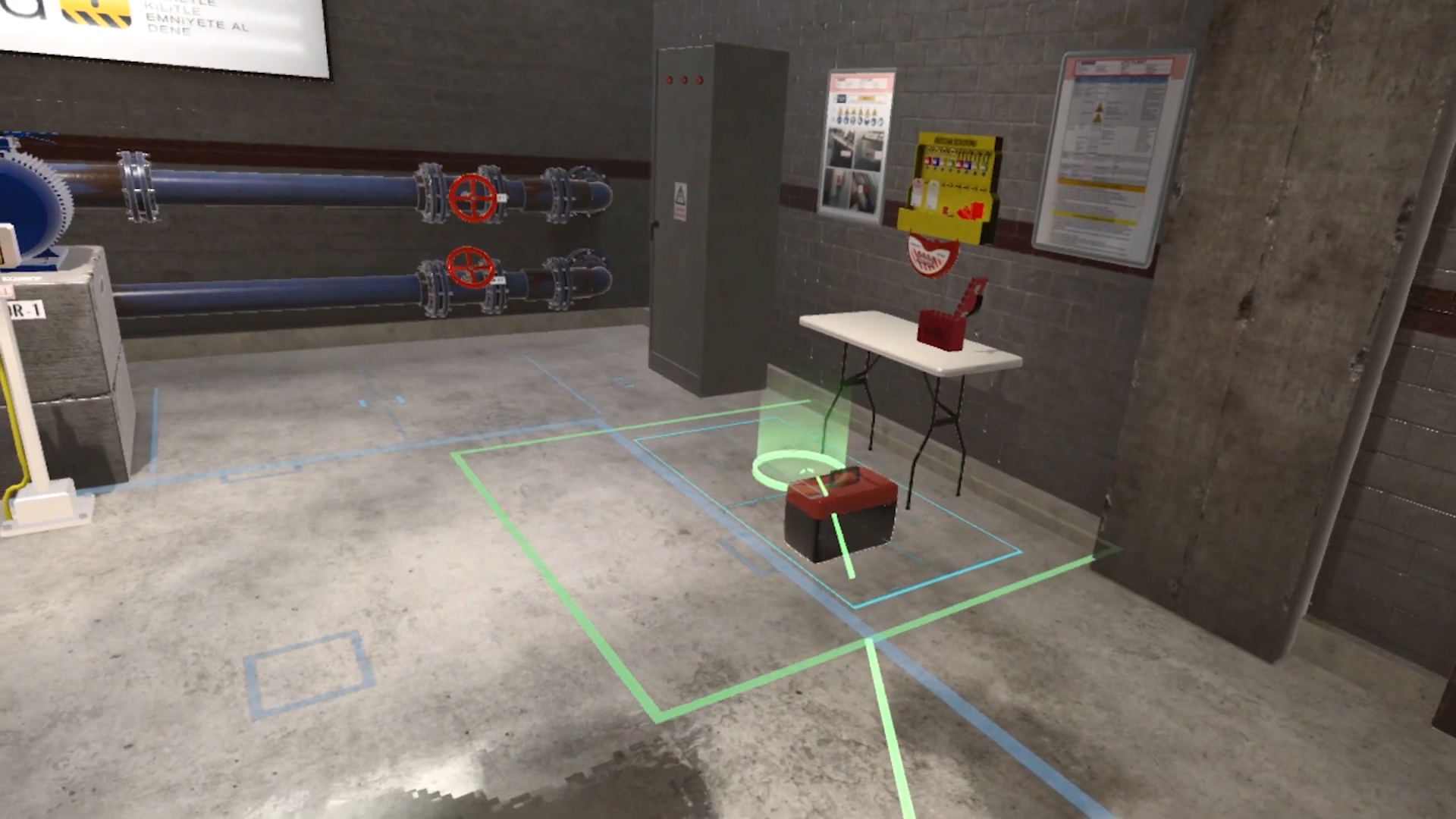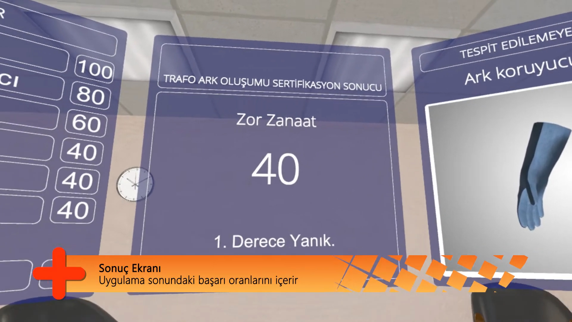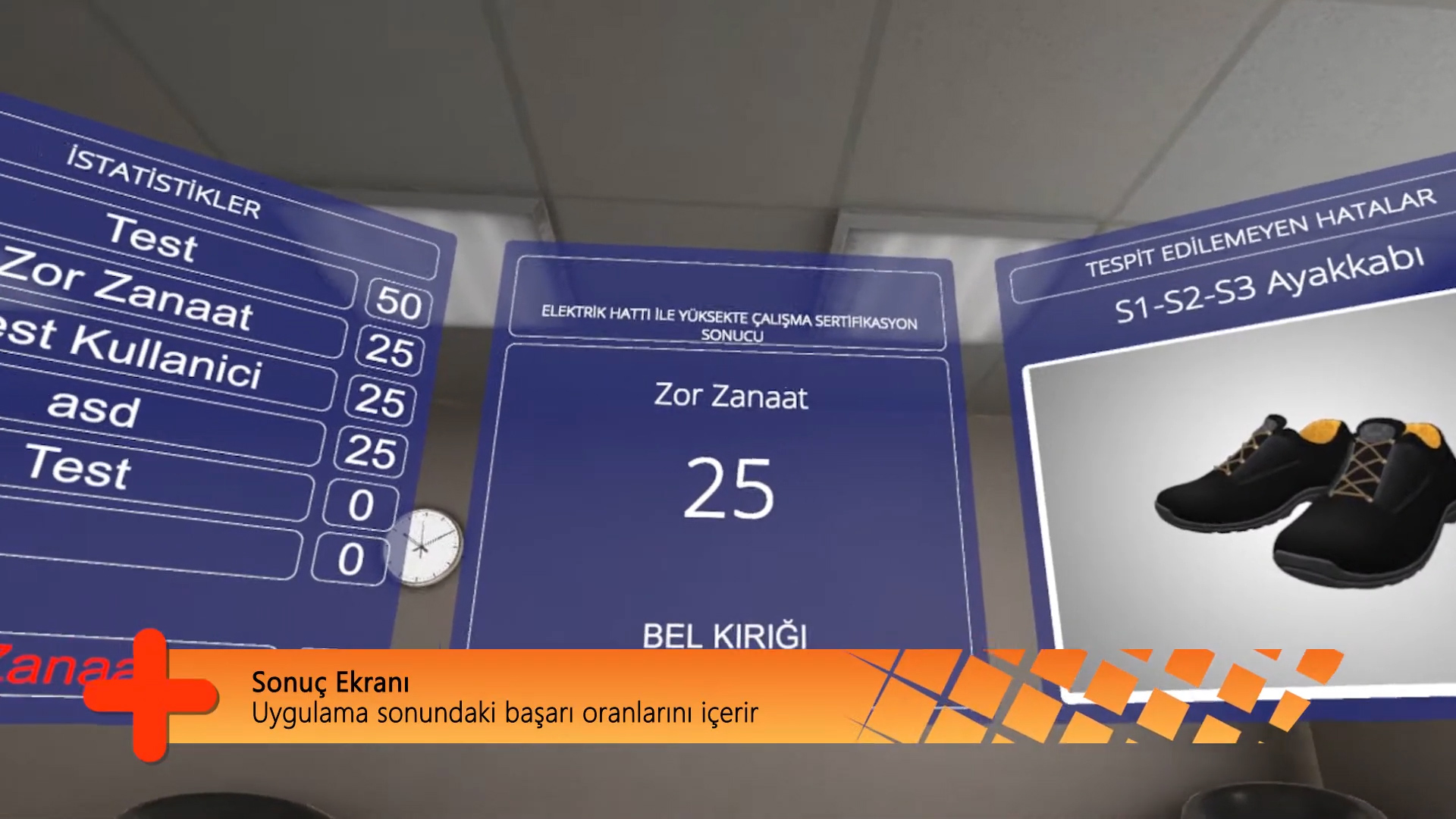 Elektrik hatlarında çalışanların iş güvenliği için üretilmiş VR-Oyun. Oyuncular gerekli ekipmanları alarak çalışma sahasına geçer. Arızalı elektrik trafosunu bulup, problemli bölgeye müdahale etmeye çalışır. Doğru ekipman seçen oyuncu yüksek puan alır. Testi başarıyla tamamlamış olur. Hatalı ekipman ile başlayan ise elektrik çarpması sonucu hasar görür ve oyun sonunda düşük puan alıp başarısız olur.