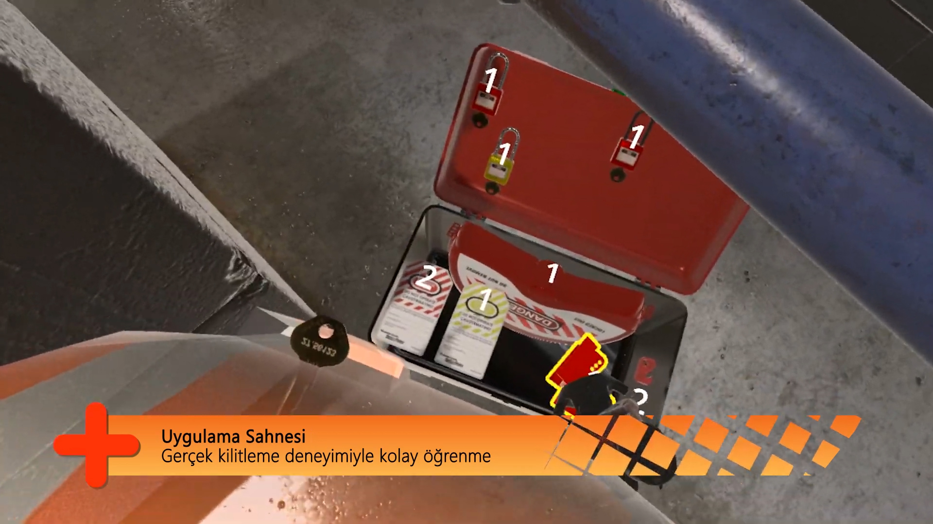 Fabrikalarda güvenlik çalışanlarının iş sonrası çalışma alanlarındaki güvenlik için çeşitli kilitler kullanarak gerekli kilitleme işlemlerini gerçekleştirdiği bir VR-Oyunudur. Gerekli ikazlar ve yönlendirmeler ile doğru kilitlemeyi yapıp sorunlu bir bölgeye göz atan oyuncu başarılı bir şekilde oyunu tamamlar. Aksi durumda başarısız olur ve tekrar oynayıp doğru işlemler ile başarılı olmaya çalışır.